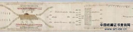 此图描绘的是于1805年贞纯王后(1745-1805)薨,同年6月19日举行国葬时发靷行列前往葬地东九陵的班次图。贞纯王后则是朝鲜第21代国王英祖(1724-1776年在位)的继妃。