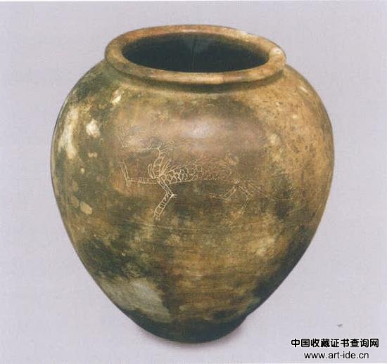图 23 白釉绿彩刻划龙纹罐。“黑石号”沉船出水,新加坡亚洲文明博物馆藏。