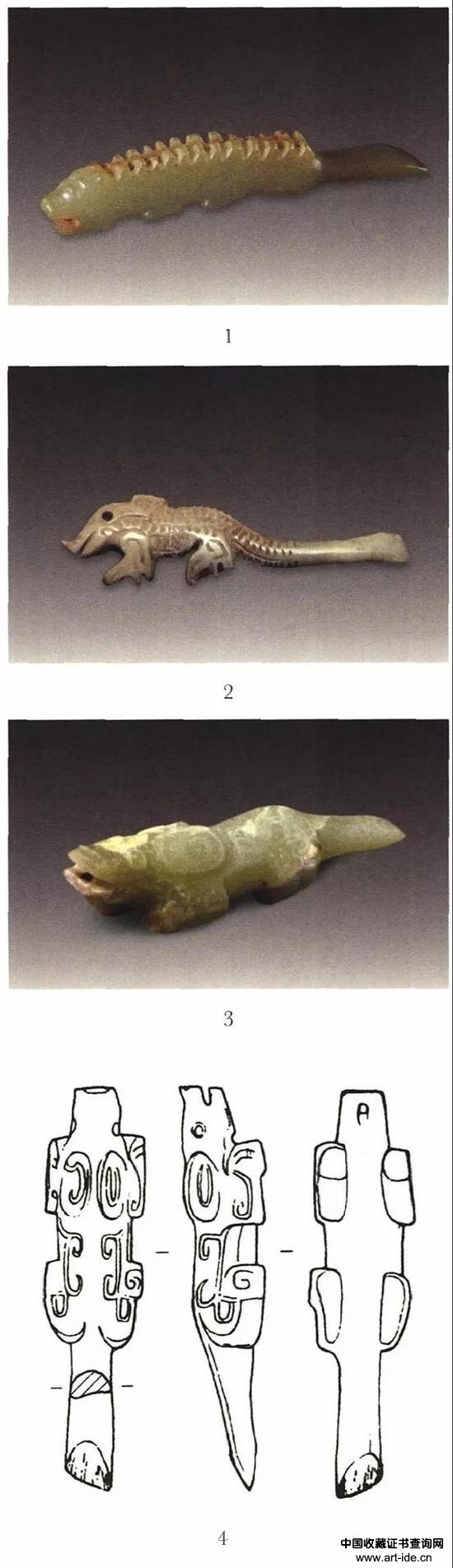 1。章乃器藏鳄鱼形玉刻刀 2。妇好墓出土鳄鱼形玉刻刀